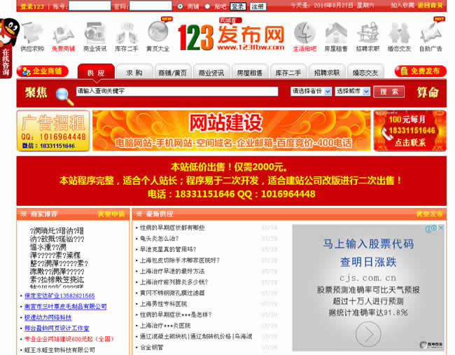 成立于2010年3月,是面向全国各个城市的网络媒体和地方信息发布平台,经过几个月的发展,网站目前日点…