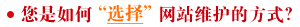 网站维护服务:我们针对已经建立企业网站的用户提供专业的网站维护服务,包括网站内容的更新(如产品信息的更新,企业新闻动态更新,招聘启示更新等)、网站风格的更新(如网站改版)、网站重要页面设计制作(如启示重大事件页面、突发事件及公司周年庆活动页面设计制作)、网站系统维护服务(如:email帐号维护服务、域名维护续费服务、网站空间维护、与IDC进行联系、DNS设置、域名解析服务等)