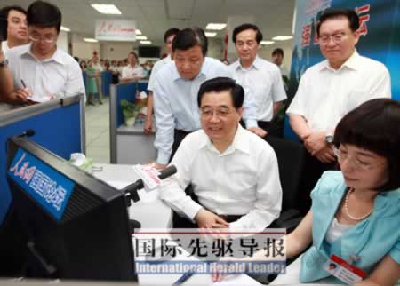 “平时我上网,一是想看一看国内外新闻,二是想从网上了解网民朋友们关心些什么问题、有些什么看法,三是希望从网上了解网民朋友们对党和国家工作有些什么意见和建议。”胡锦涛的这番话得到了中国网民的热捧。BBC评价说,“他尝试着上网尽可能多地了解普通百姓的想法。”