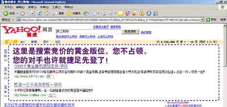 雅虎搜索竞价——最佳搜索营销服务 搜索竞价是由全球最大的互联网服务商雅虎在全球首创的网络营销推广方式。